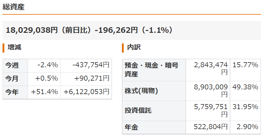 総資産は1,802万円となりました。