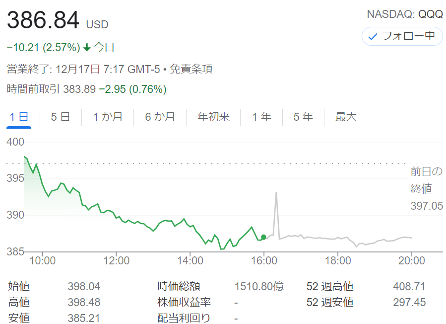 午前の買いのみでストップしようかと思いましたが、お昼過ぎに一気に下げたためそこでも一株追加で購入。