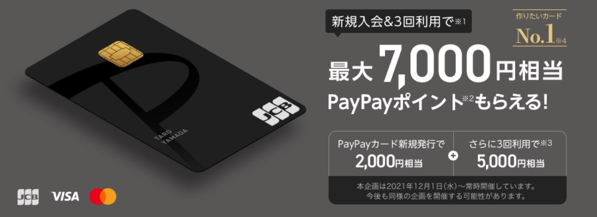 なおPayPayカードを初めて作成する人はカード会社のやってるキャンペーンにも参加できます。