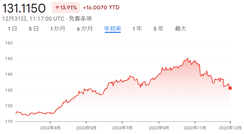 致し方ないとはいえ、今年の相場の資産評価額はドル円で随分底上げされていたということがわかります。しかし黒田さんの一件があっても今年のドル円年初来推移は+13.91%ですか、そうですか・・。
