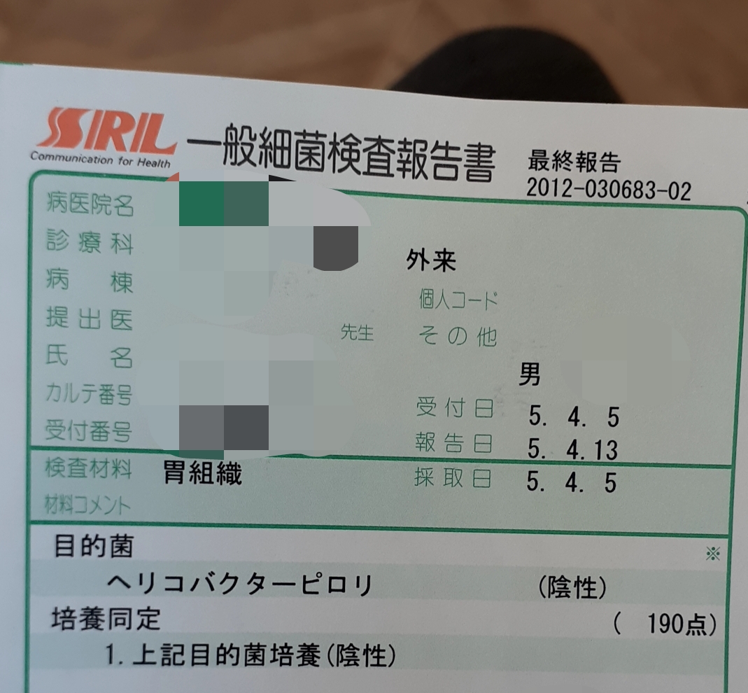 そして胃カメラを飲んだ時にピロリ菌も一緒に見てもらったのですがそれについての結果も確認。