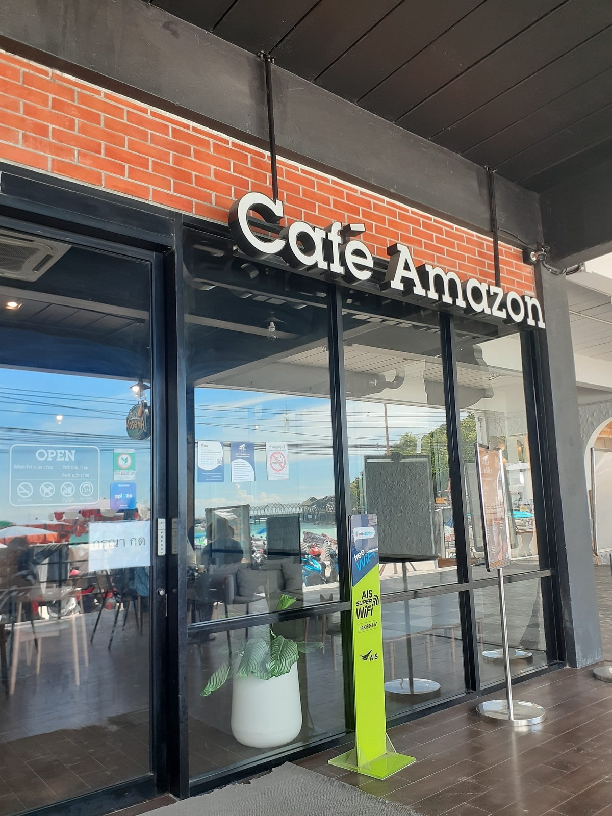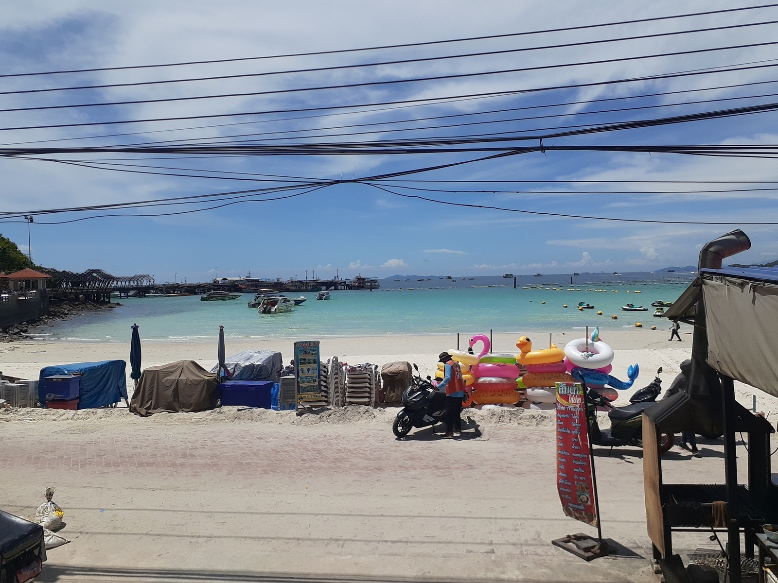 さて、身支度を整え出発。ウォーキングストリート手前でソンテウを降り、朝の明るいウォーキングストリートを抜けて桟橋に向かいます。