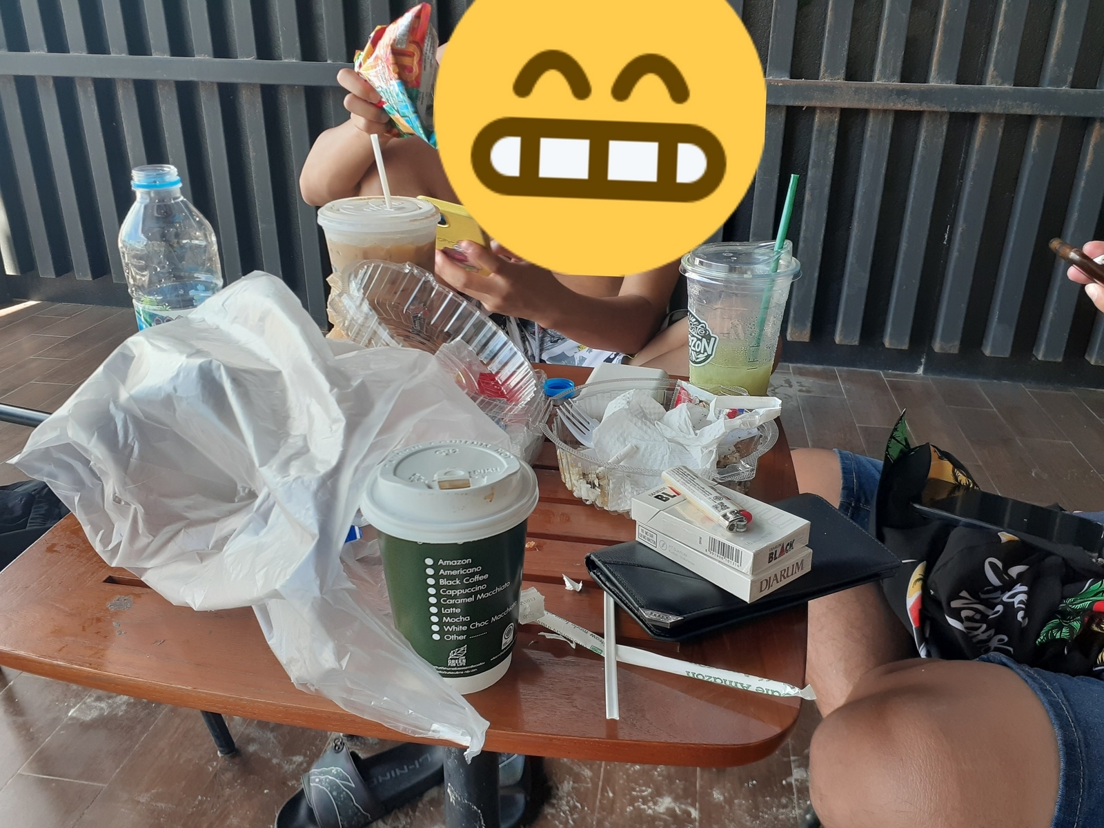 こちらのカフェでコーヒーを買って店の前の席の一角に陣取ります。