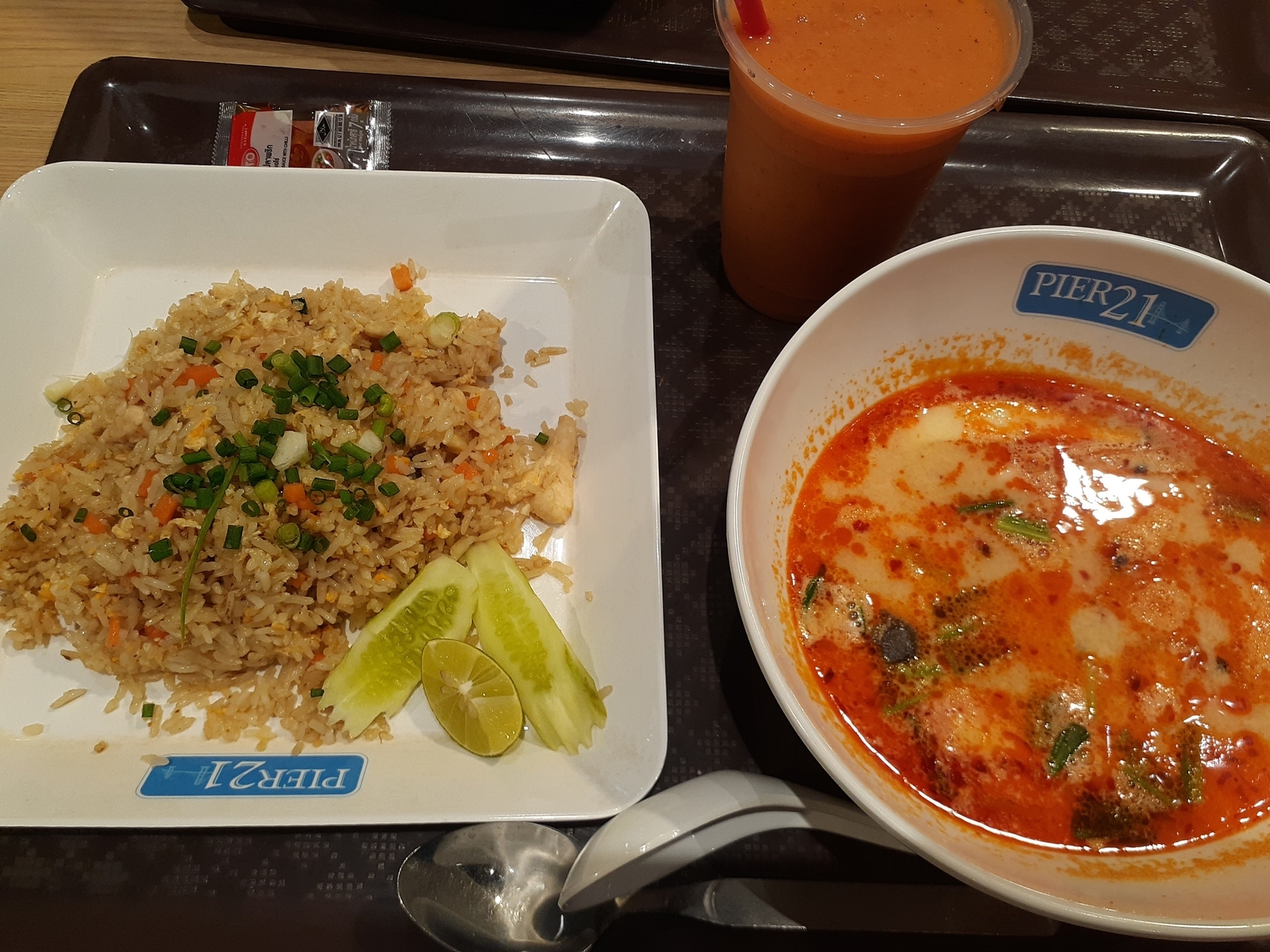 いつものチャーハン&トムヤムクンのセット。85Bでお腹も膨れて味も色々楽しめて最高のご飯です。