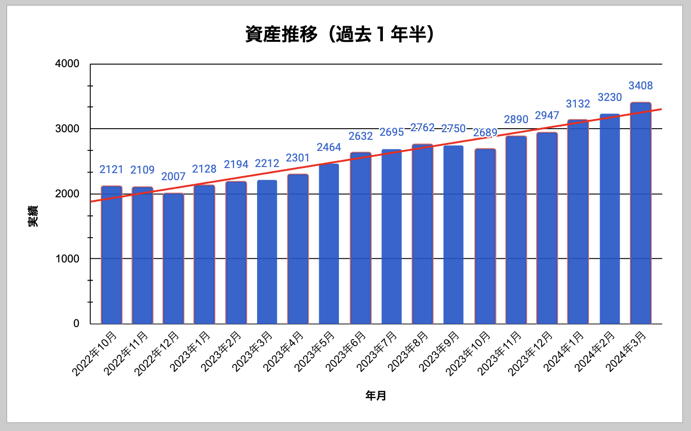 昨年からの資産推移はこの通りです。