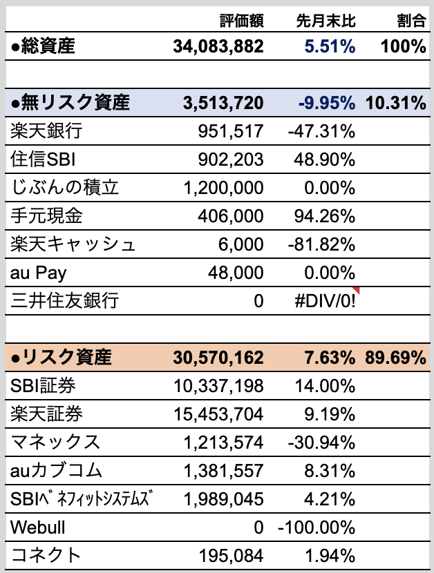 規模にも寄るは思いますが、投資をしている人としていない人の差はこうやって開いていくのだろうなと記録を付けていると痛感します。また20台半ばで運用に全力で取り組んで良かったなとも感じます。